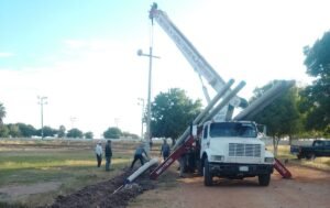Juan José Ríos | Sinaloa | Inició la instalación de postes y cableado para iluminar la parte principal de la