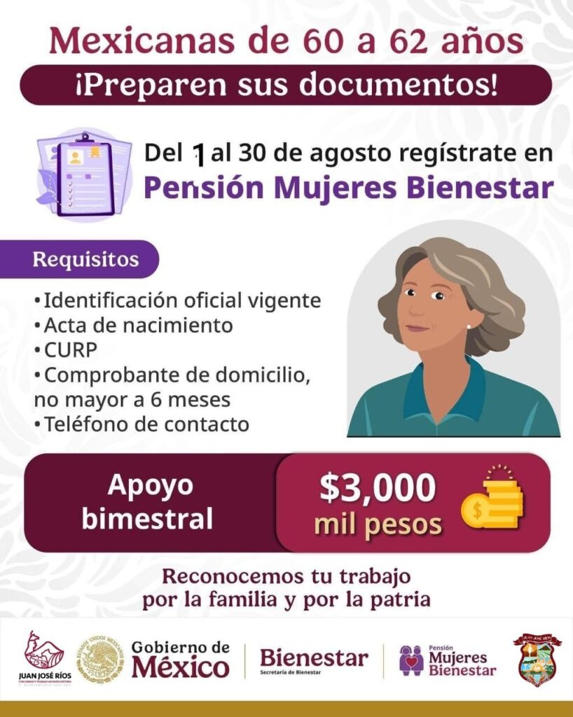 Las autoridades federales exhortaron a las mujeres que cumplan con los requisitos a prepararse con tiempo y estar atentas a la convocatoria oficial para conocer las sedes exactas de registro.
