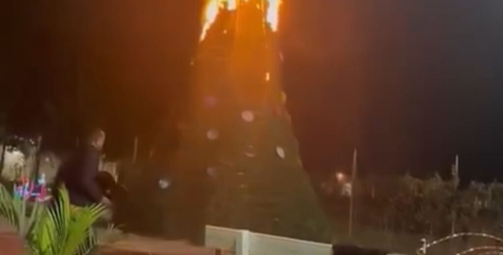De acuerdo con versiones de vecinos y testimonios difundidos en redes sociales, varios niños y adolescentes lanzaron cuetes conocidos como “tumba casas” hacia el área donde se encontraba el pino navideño, construido por la propia comunidad, lo que ocasionó que la estructura comenzara a incendiarse sin que pudiera ser controlada por los asistentes.