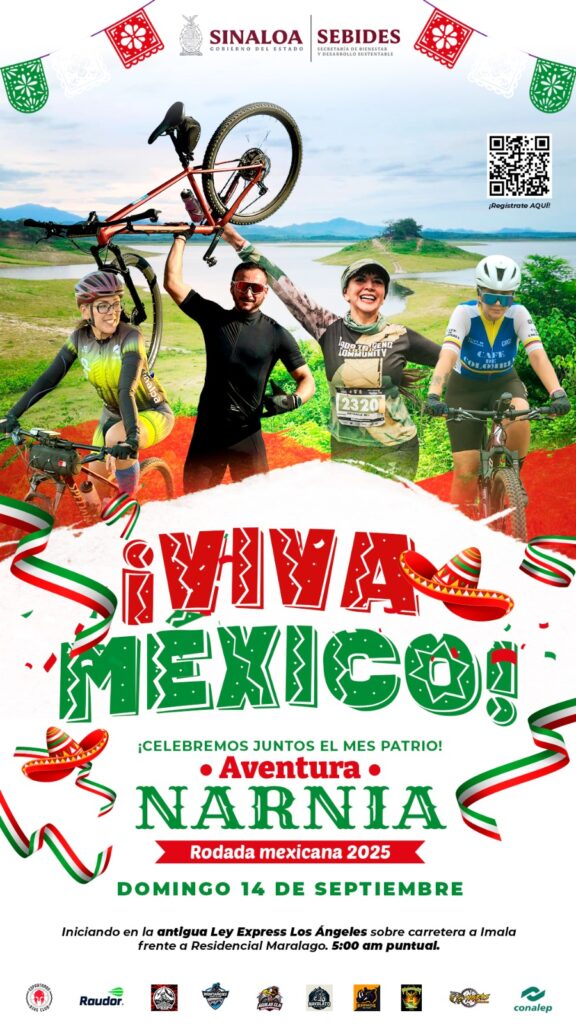 Culiacán | Sinaloa | El Gobierno de Sinaloa, a través de la Secretaría de Bienestar y Desarrollo Sustentable (SEBIDES), invita a la ciudadanía en general a sumarse a la Rodada Mexicana 2025 “Aventura Narnia”, que se llevará a cabo el domingo 14 de septiembre, con salida a las 5:00 a.m. desde Antigua Ley Express Los Ángeles (carretera Culiacán-Imala, frente al residencial Maralago), para terminar en Narnia.