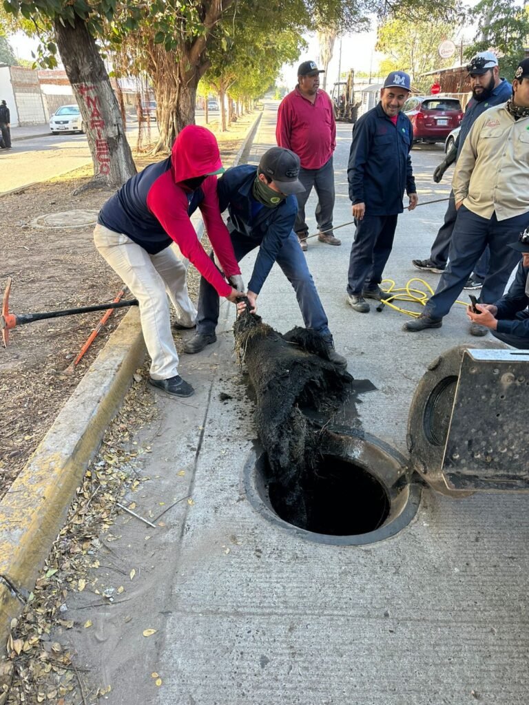 Asimismo, en días recientes, a la vuelta del mismo sector sobre el bulevar Agustina Ramírez, cuadrillas operativas realizaron otro trabajo de limpieza al extraer una llanta que se encontraba dentro de la red sanitaria, lo que también generaba afectaciones al flujo.