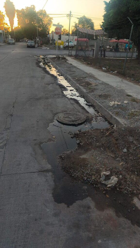 Un ciudadano ha reportado que el drenaje en la calle Huinolo entre Pasadena y Santa Mónica en la colonia Canteras de Los Mochis, Sinaloa, lleva 15 días colapsado.