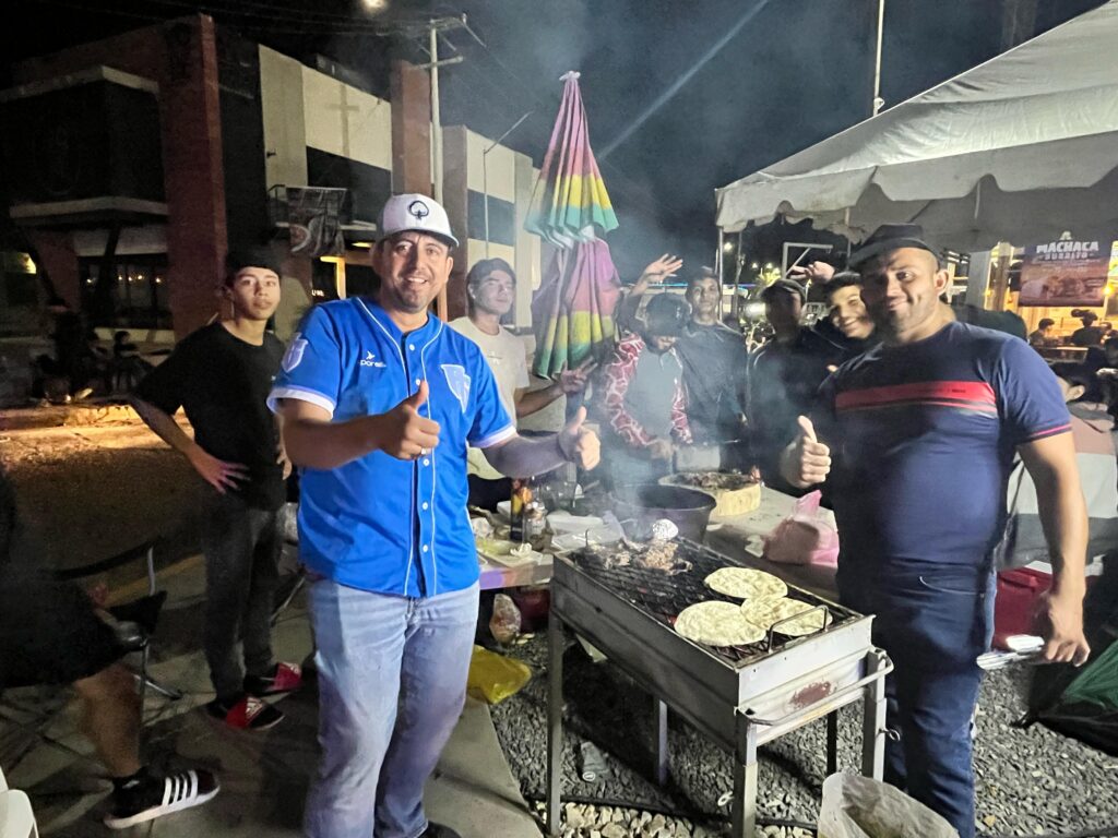 La explanada frente al restaurante se convirtió rápidamente en un campamento improvisado, con sillas, casas de campaña, lonas, hieleras y bocinas. Pero más allá de eso, lo que llamó la atención fue la variedad de actividades entre los asistentes: hubo quienes se dedicaron a poner uñas y pestañas, familias que llevaron carne para asar, jóvenes haciendo tareas escolares y otros más jugando videojuegos en plena banqueta. La espera se transformó en una experiencia colectiva y única.
