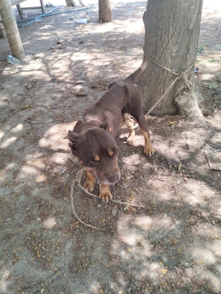 Testigos señalan que una camioneta blanca con redilas descendió a un canino adulto de talla grande, raza Pitbull Blue, color café, el cual presentaba aparentes síntomas de infección ocular. Posteriormente, el vehículo se retiró del lugar, dejando al animal sin supervisión ni atención médica.