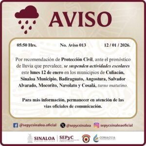 Suspenden clases matutinas en municipios de Sinaloa por pronóstico de lluvias Leer entrada »