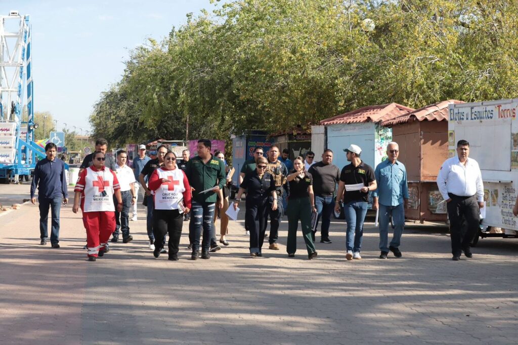 Durante la inspección se revisaron los puntos donde se instalarán el comando de incidentes, el escenario principal, los juegos mecánicos, los puestos ambulantes, el área gastronómica y los accesos para las unidades de emergencia, con el objetivo de garantizar una respuesta rápida de ambulancias, equipos de rescate y patrullas en caso de ser necesario.