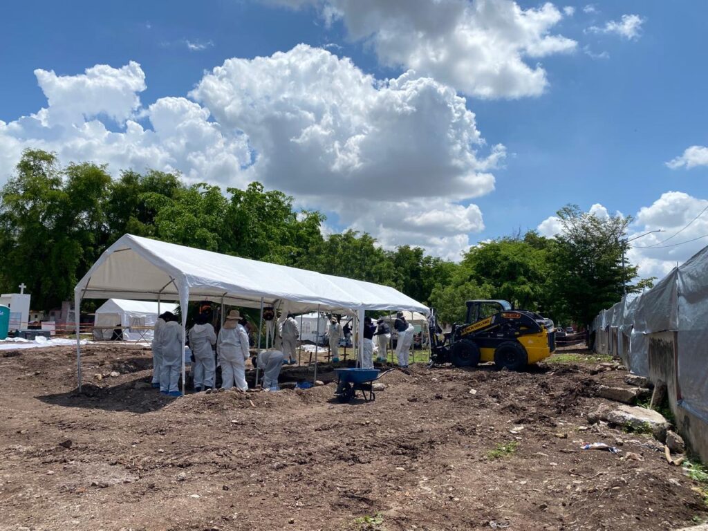 Culiacán | Sinaloa | Por tercer día consecutivo, personal forense del Programa de Recuperación, Resguardo Temporal e Identificación Humana (PertiDH) continúa con los trabajos de excavación en la fosa común del Panteón 21 de Marzo, en la capital del estado, como parte del proceso de recuperación, análisis e identificación de cuerpos no reclamados.