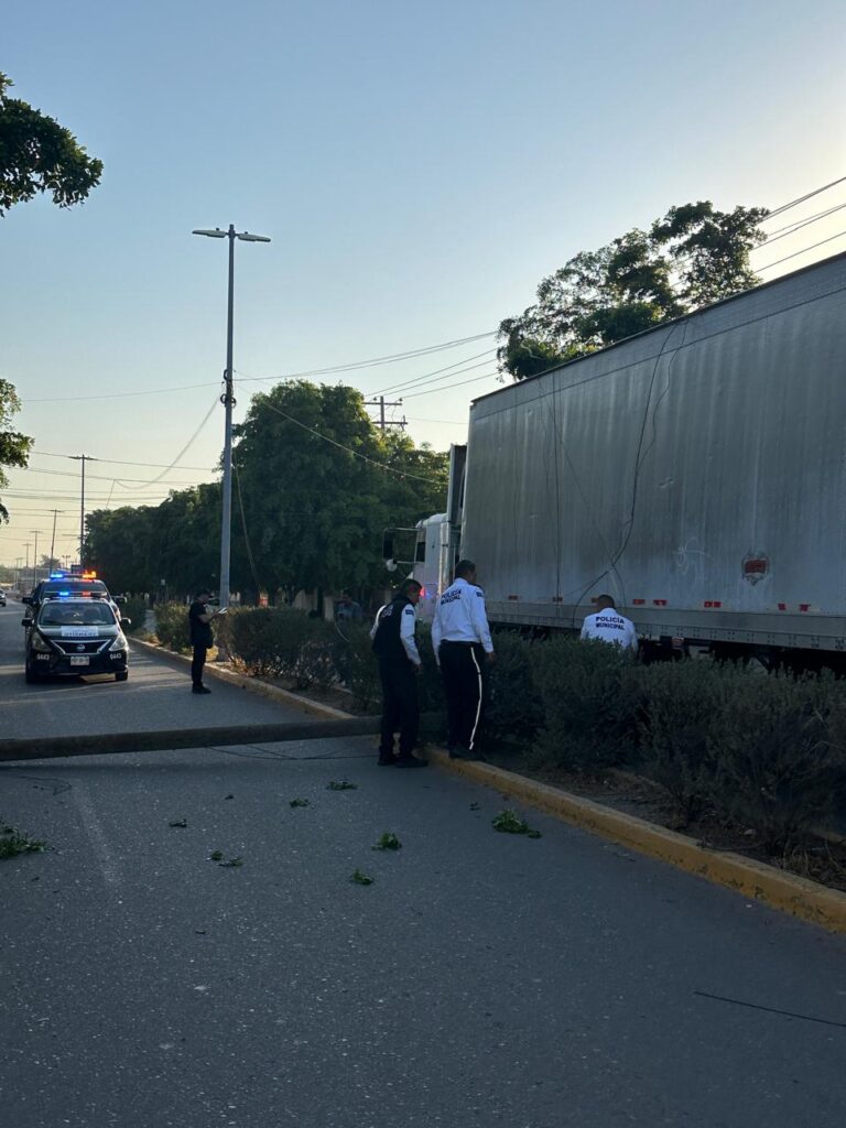 En el lugar se encontraba un tractocamión marca Freightliner, color blanco, modelo 1999, conducido por Ismael “N”, de 57 años de edad, junto al poste caído y cables enredados.