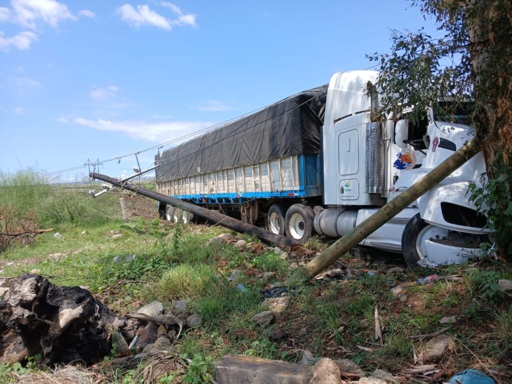 Guasave | Sinaloa | Alrededor de las 12:40 horas de este jueves 28 de agosto, un tráiler Kenworth blanco modelo 2008 se salió de la carretera México 15, a la altura de la empresa El Rey del Frijol, en la sindicatura de Adolfo Ruiz Cortines, impactándose contra un arbotante.