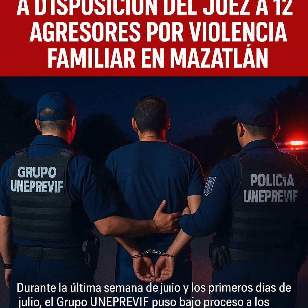 Mazatlán | Sinaloa | Durante la última semana de junio y los primeros días de julio, el Grupo UNEPREVIF de la Secretaría de Seguridad Pública de Mazatlán logró poner a disposición del juez cívico a 12 personas señaladas como probables generadores de violencia familiar, como parte de su estrategia preventiva y de atención directa a víctimas.