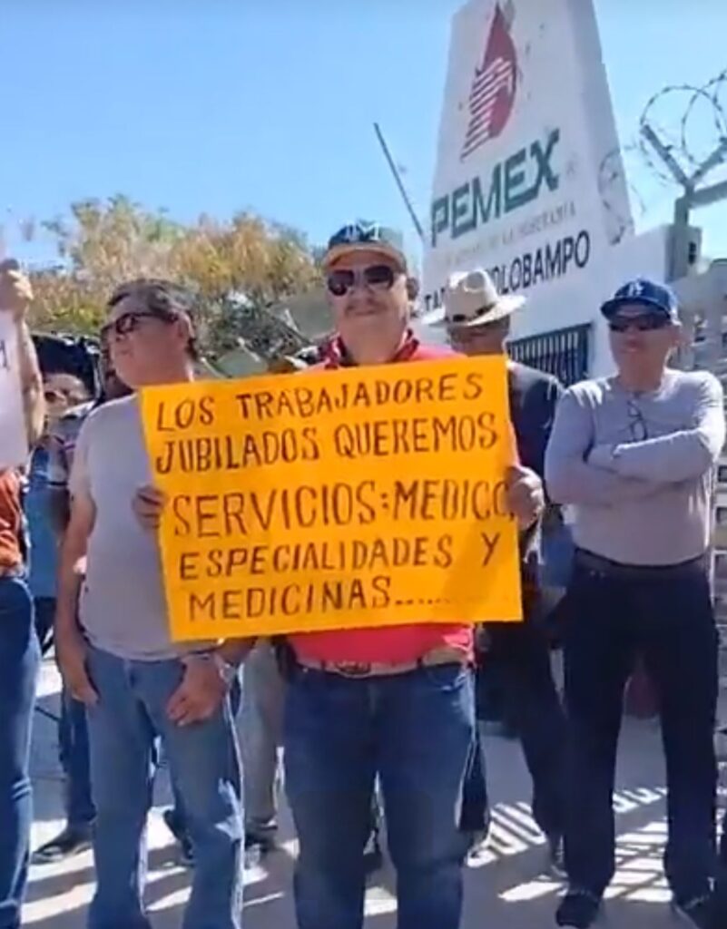 “Exigimos soluciones a falta de medicamentos, atención de urgencias, hospitales y consultas especializadas”, se lee en las pancartas. Los manifestantes aseguran que la situación es grave y que han tenido que buscar atención médica en hospitales generales debido a la falta de servicios en Pemex.