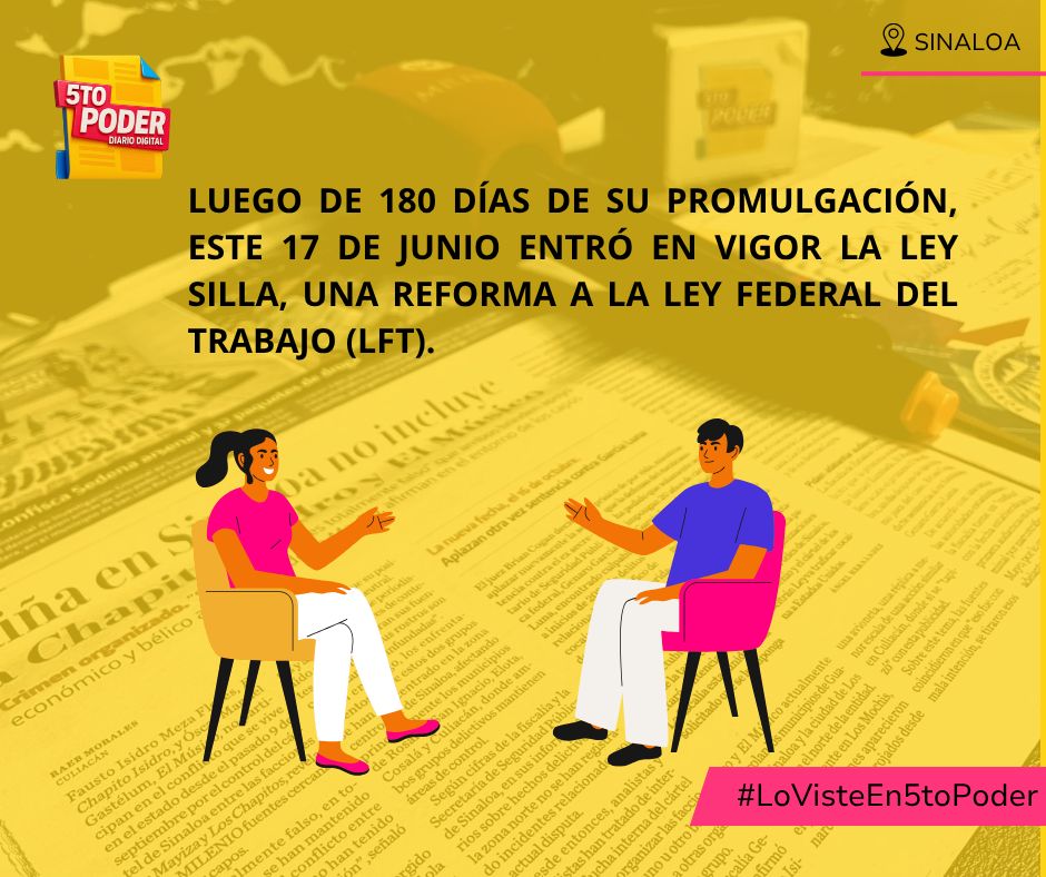 Sinaloa | Luego de 180 días de su promulgación, este 17 de junio entró en vigor la Ley Silla, una reforma a la Ley Federal del Trabajo (LFT), lo que obliga a los centros de trabajo a garantizar que los empleados, principalmente del sector comercial y de atención al cliente, tengan acceso a una silla para sentarse durante su jornada laboral, siempre que las funciones que desempeñan lo permitan.